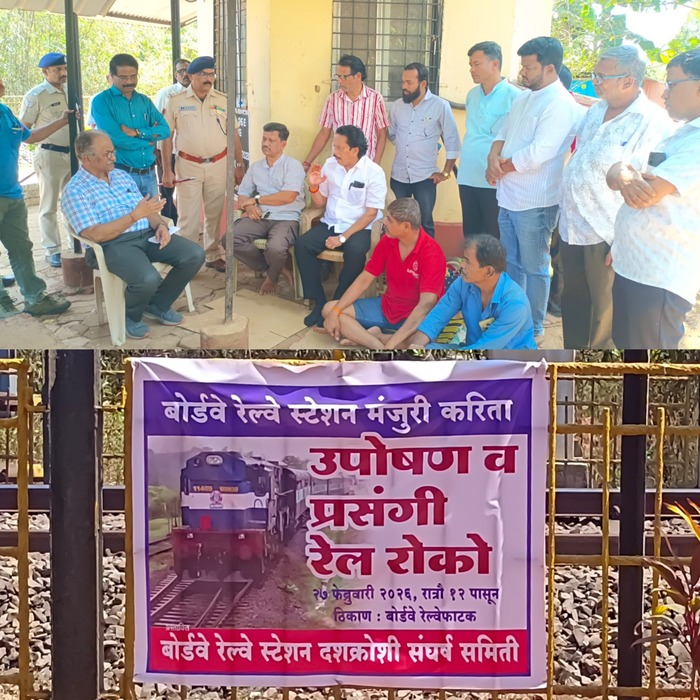 कणकवली : बोर्डवे येथे रेल्वे स्टेशनला मंजुरी मिळावी या मागणीसाठी दशक्रोशी संघर्ष समितीच्यावतीने २७ फेब्रुवारी रोजी मध्यरात्री १२ वा. पासून बोर्डवे रेल्वे फाटक येथे उपोषण सुरू करण्यात आले आहे. मागणी मान्य न झाल्यास रेलरोको आंदोलन छेडण्याचा इशाराही नागरिकांनी दिला आहे.